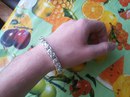 Full-fledged silver bracelet on hand.