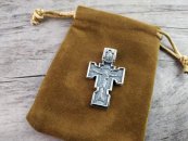 In the photo: Orthodox pectoral cross with blackening. On the one hand, the crucifixion of Christ. On the other hand, the Archangel Michael and the Kazan Icon of the Mother of God. Height: 6.5 mm