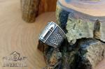 This massive signet ring of sterling silver with a decorative bullet and striking blackening accentuates its rugged character and precision craftsmanship. Weighing 11 grams, it feels comfortable on the hand and looks impressive. Its durable construction and classic shape make it a practical and durable accessory.
