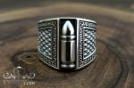 Men's signet ring of sterling silver with blackening and a decorative bullet