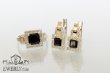 A spectacular square cubic zirconia of a rich amethyst (purple) hue is framed by smaller, sparkling white stones. The base is natural 925 sterling silver, complemented by an elegant insert of 9k gold.