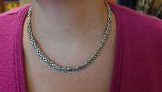 Повновісний срібний ланцюжок на шию. Дане плетіння досить трудомістке у виконанні, і більшість ювелірів не володіють достатнім рівнем навичок у виготовленні, щоб досягти високої якості прикрас, не кажучи вже про те, щоб просто виготовити. На цей час якість наших робіт з цього плетіння значно перевершує більшості інших виробників.